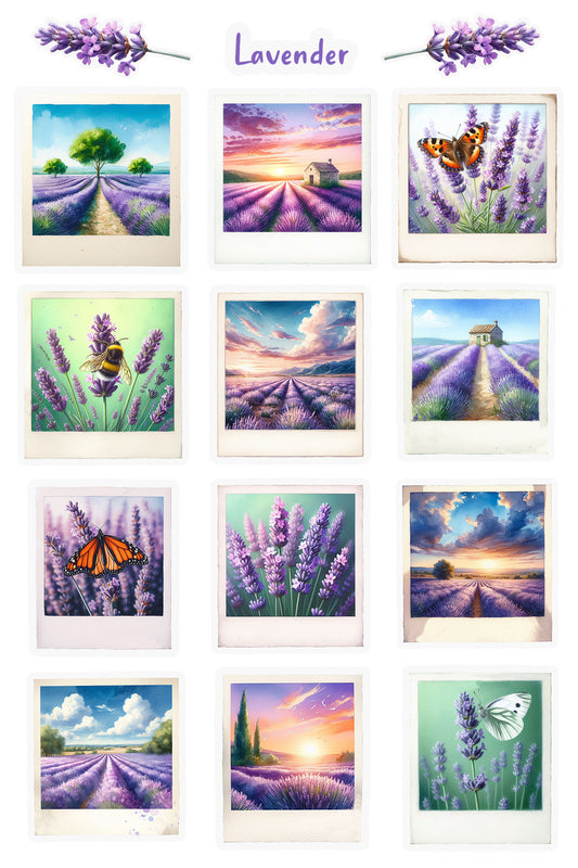 Lavender Fields Polaroids Sticker Sheet